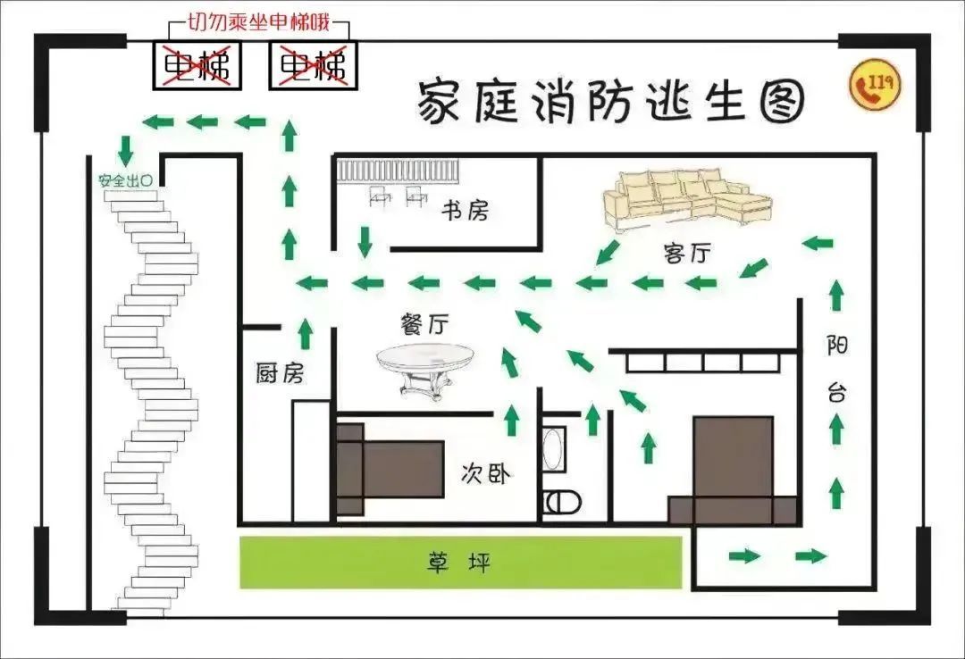 一份家庭逃生路线图熟记于心