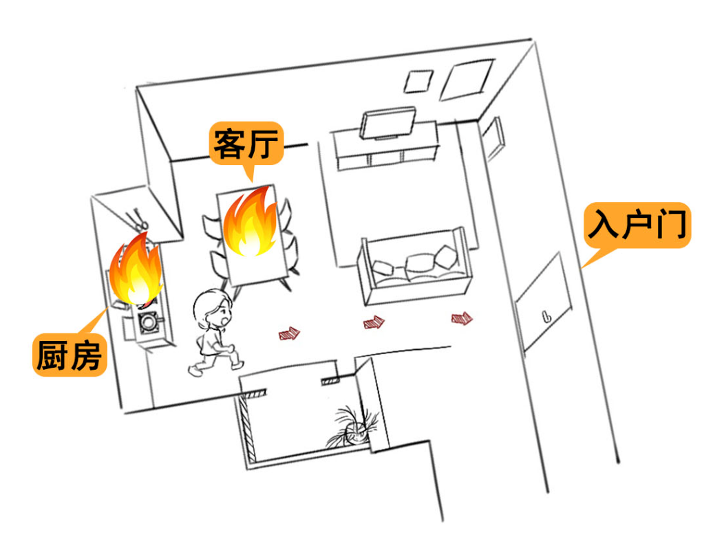 一定要记得让每位家庭成员都熟悉火灾逃生路线,最好进行一次火灾逃生演练,确保一旦真正发生火灾,家庭成员能在烟、火封堵逃生路线前弯腰低姿、用湿毛巾捂住口鼻,按照火灾逃生路线准确、快速疏散逃生。